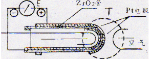 传感器的检测组件是氧化锆电解质管,工作原理图如下: